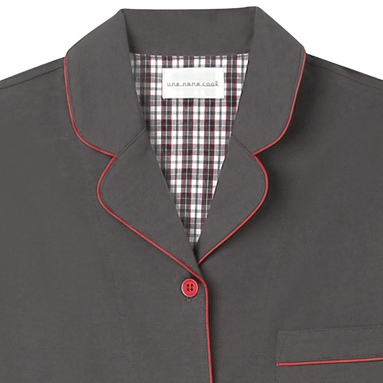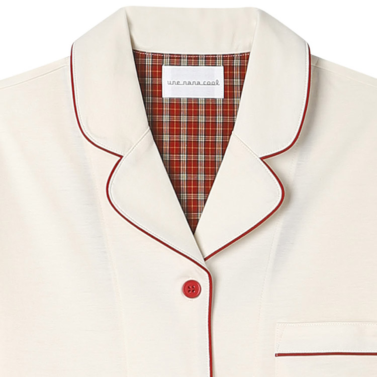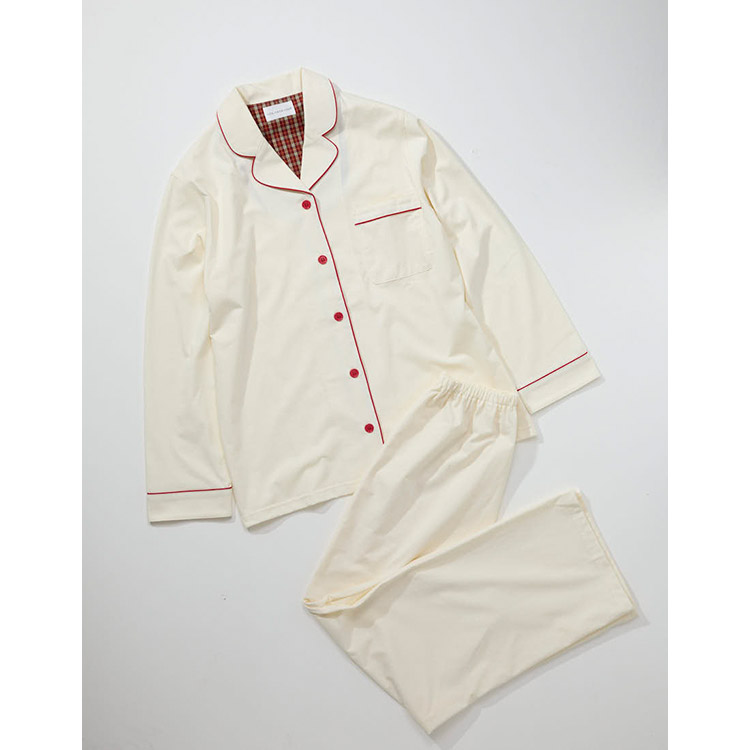 | かわいく着られて、ちょっぴり高級感のある開襟シャツのパジャマ。 なめらかな肌あたりの綿混生地でシーズンを通して着られるアイテムです。 パイピングのカラー配色と背当てのチェック柄がデザインがポイント。 リラックスできる着心地にこだわったデザインは、おうちでくつろぐ時やラウンジウェアとしてもおすすめのアイテムです。 【une nana cool Upcycle PAJAMASとは】 アウターアイテムに使用されるテキスタイル(生地)で、少量ずつ余った生地をウンナナクールがパジャマづくりにアップサイクル。 本来はアウター用途に生産されたテキスタイル(生地)の中から、パジャマにぴったりな肌触りや風合いのものを厳選して使用しています。 テキスタイル(生地)に限りがあるため、各カラーともに数量限定でのご用意になります。 |
