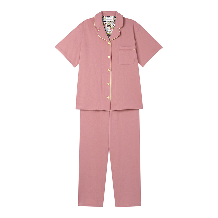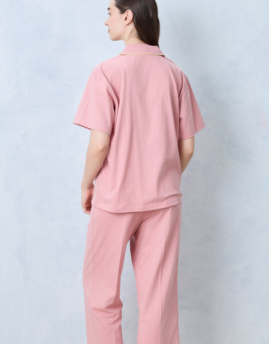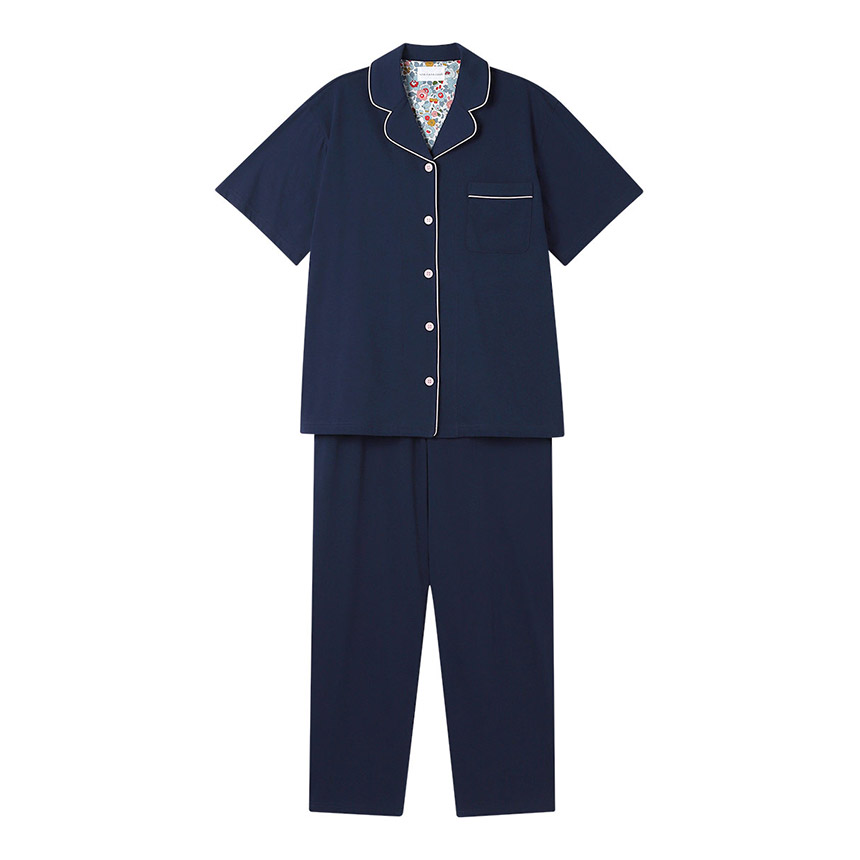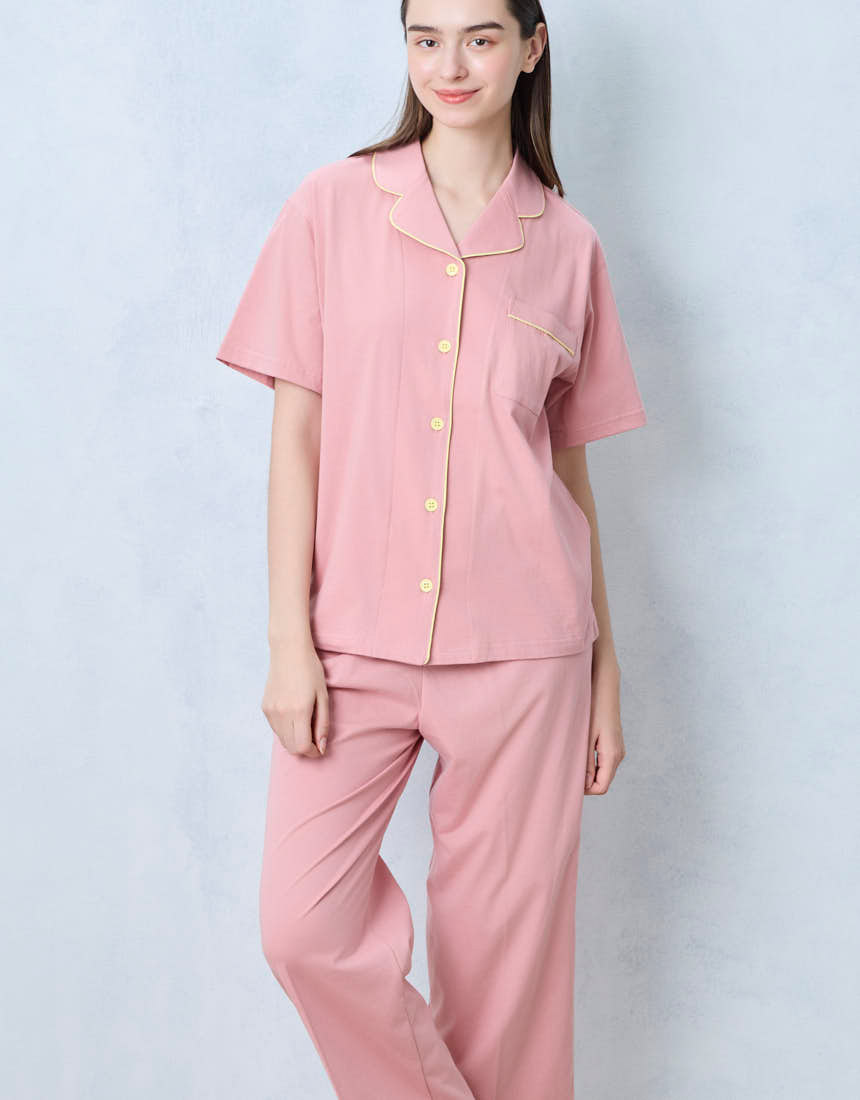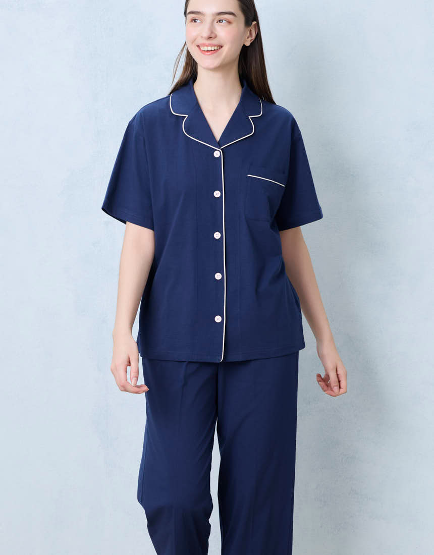 かわいく着られて、ちょっぴり高級感のある開襟シャツの半袖パジャマ。