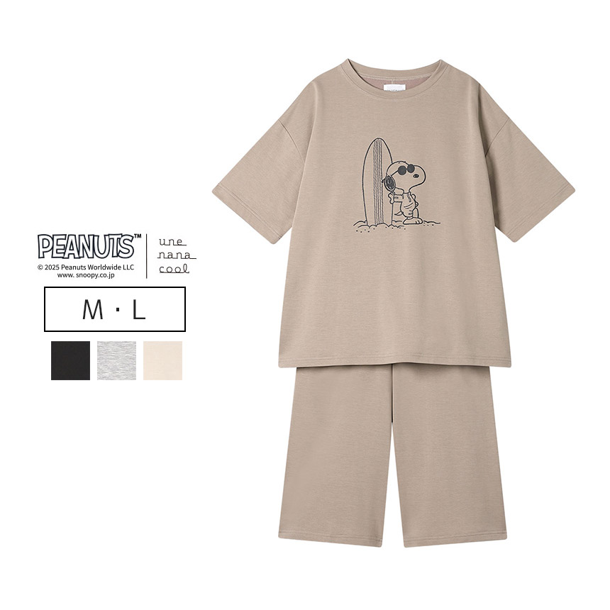 胸の部分には愛らしいスヌーピーと仲間たちを大胆にプリントしたオーバーサイズのゆったりとしたラフなシルエット。