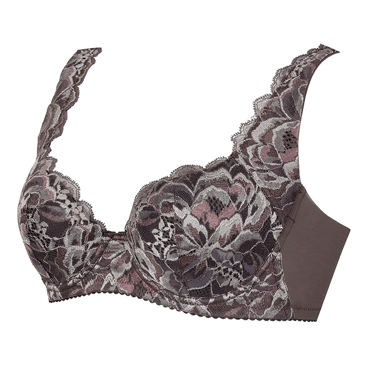 カップ肌側は、シルクプロテイン加工をほどこした綿混素材を、土台からバックにかけては綿混パワーネットを使用