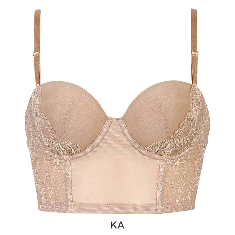 ・レリーフ模様の波形の曲線を描くスカラップデザインが繊細で優美な印象のリバーレースを使用。KAカラーはストラップにゴールドカラーの金具を使用
