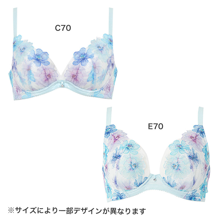 <(B)80サイズ、(C・D)80・85サイズ、(E・F)カップ>パッドなし。突出感をおさえすっきりコンパクトシルエット