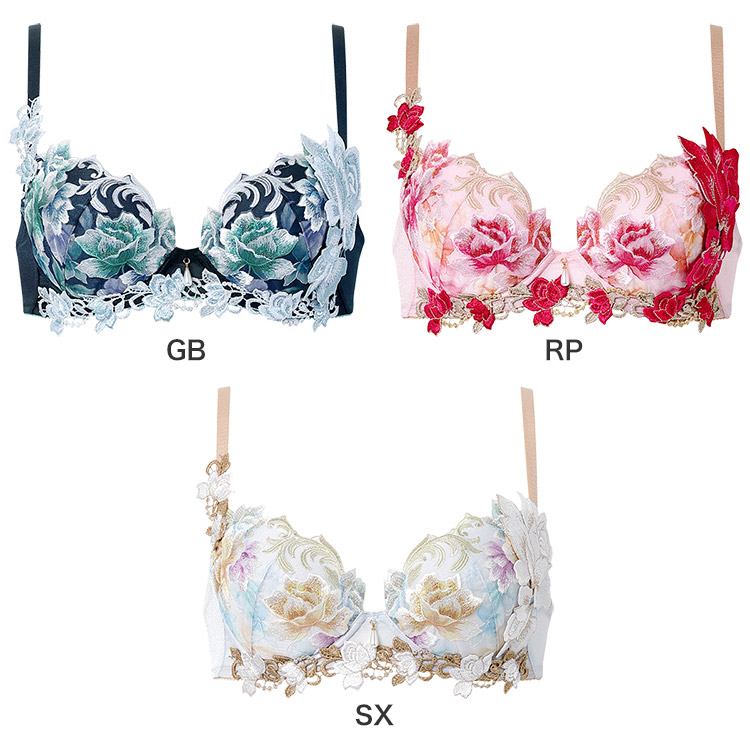 流れるようにしなやかな線が優雅なシリーズ。額縁をモチーフにした曲線が豊かな色彩の花々を引き立て、まるで絵画を見ているような気分に。神秘的な美しさをもつアルバローズをイメージしたアップリケにはきらめくクリスタルをあしらいました。前中心の上品なパールビーズのチャームがワンポイント。心華やぐ鮮やかなカラーが日々に彩りを添えます。