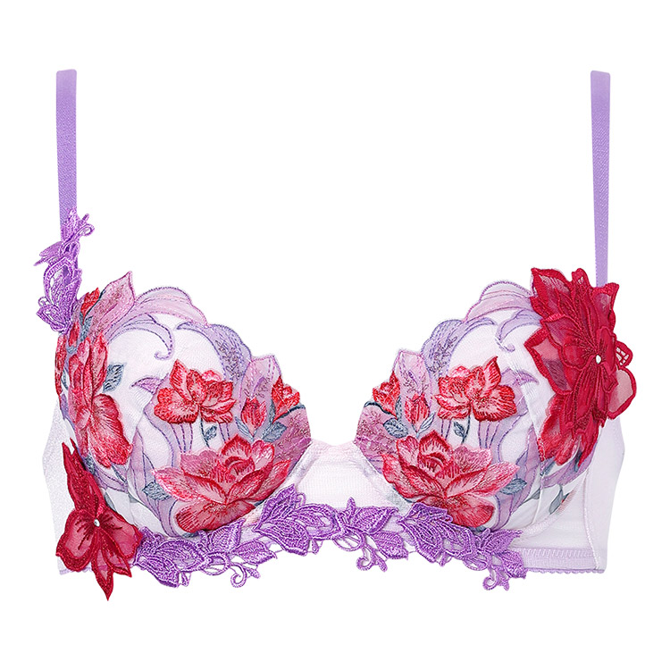 ・カップには刺繍の柄に合わせたプリントレースを使用