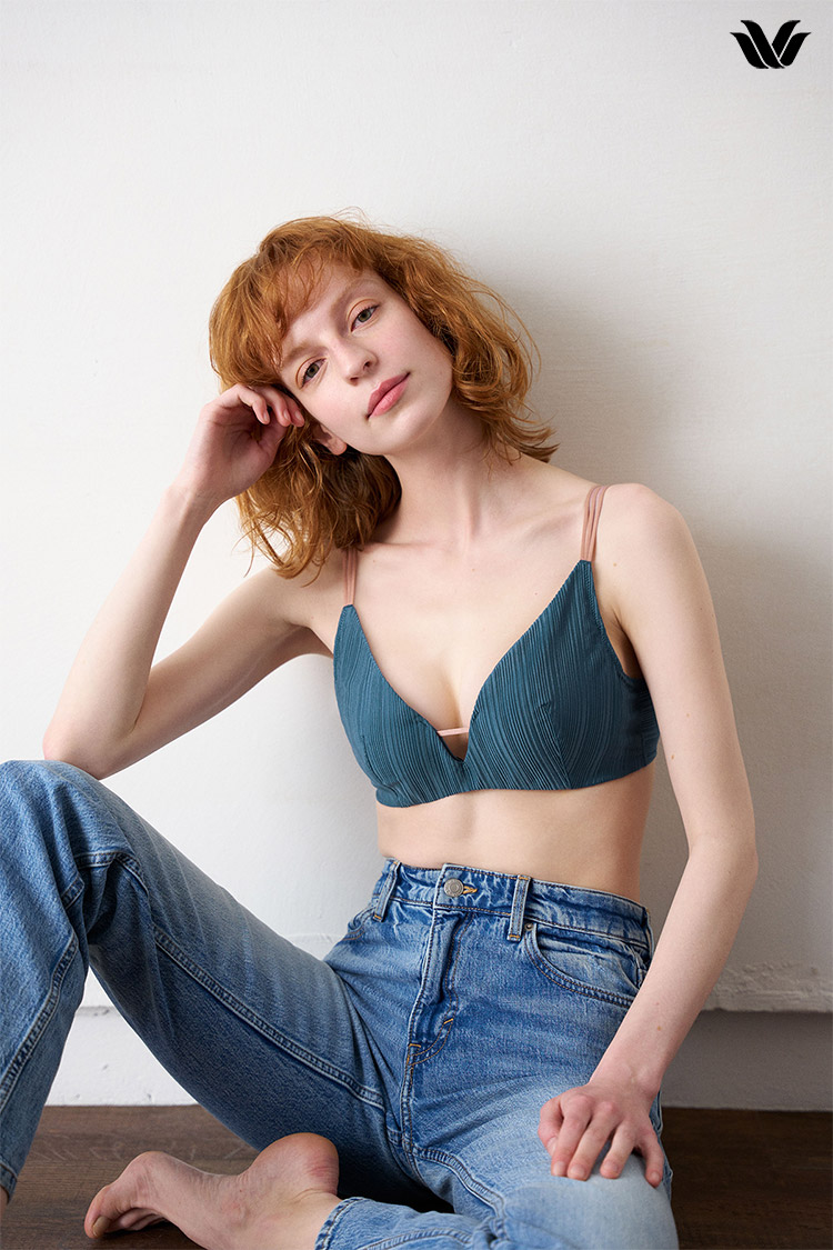 モールドカップ肌側の厚みで、バストを押し上げ、ボーンとカップ脇の切り替えで、ピタッとフィット