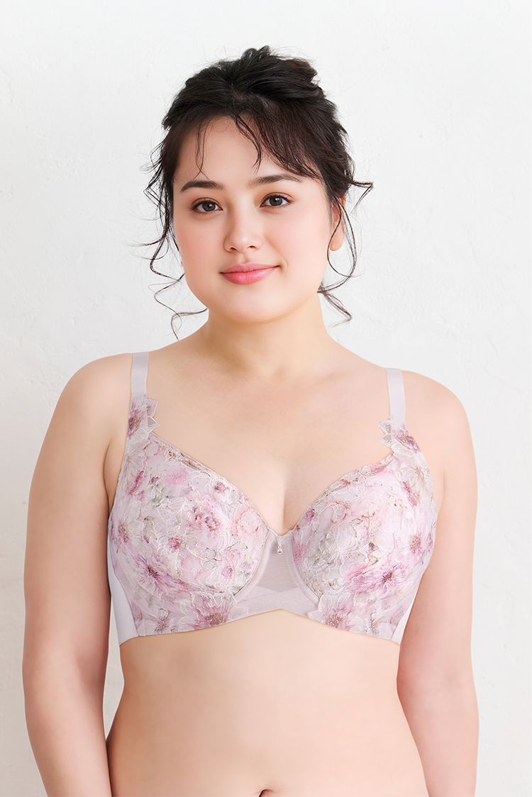 バストの高さを抑えて、トップの周径を効率的に減らすことで着やせ効果のあるブラジャー