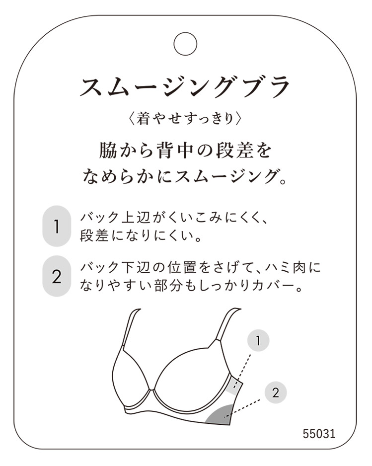バック下辺の位置を下げることで、気になる脇から背中の段差をおさえなめらかに