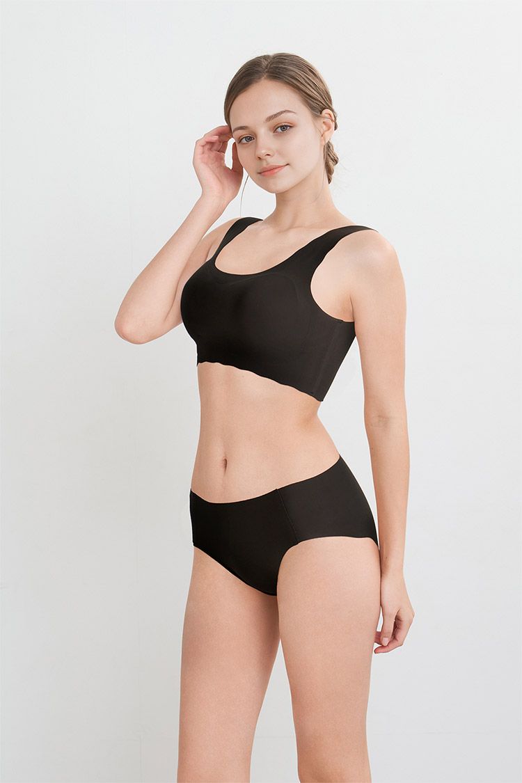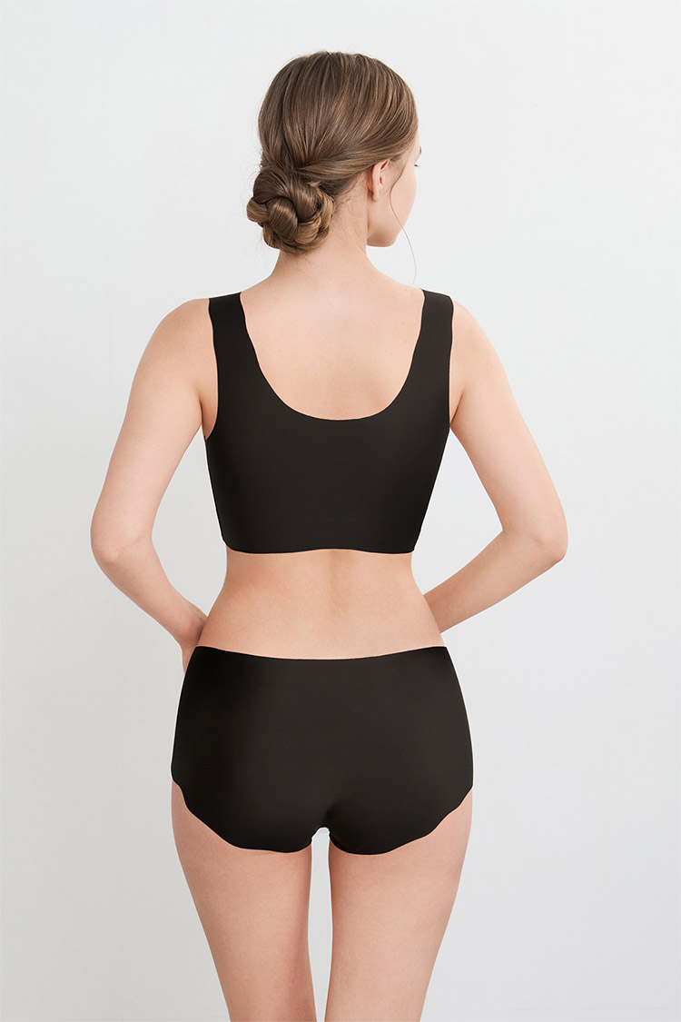 ・伸びのよい素材を使用し、接着手法によるフラット仕上げで肌に縫い目があたらず、まるでつけていないような着ごこち