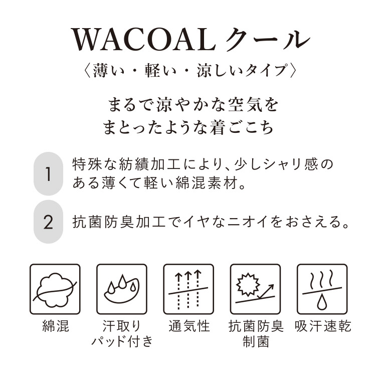 関連キーワード:wacoal 夏用 インナー 肌着 汗取りパッド付き 綿混