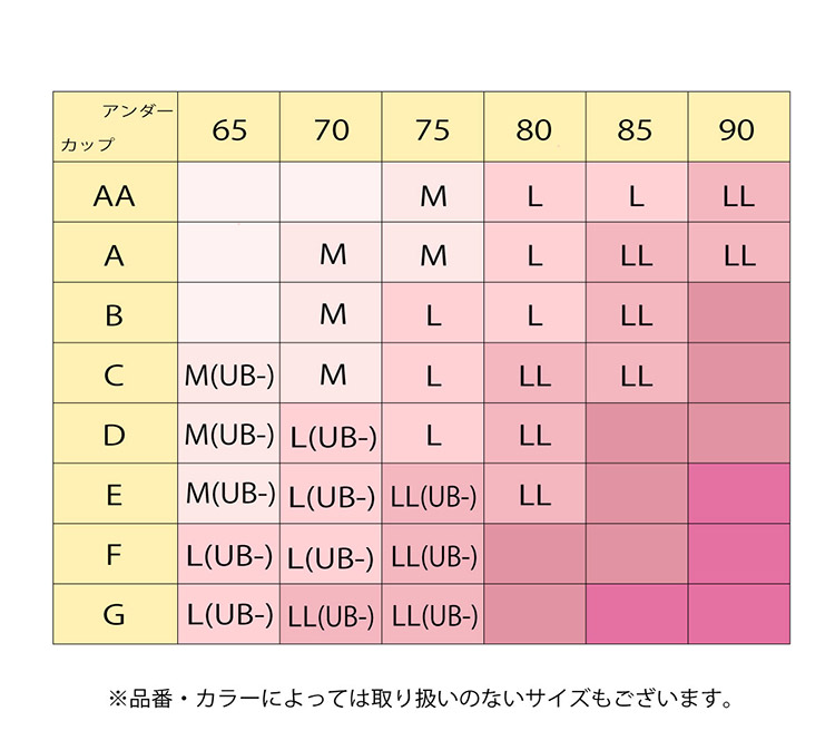 ※(UB-)はアンダーバストが小さめとなります