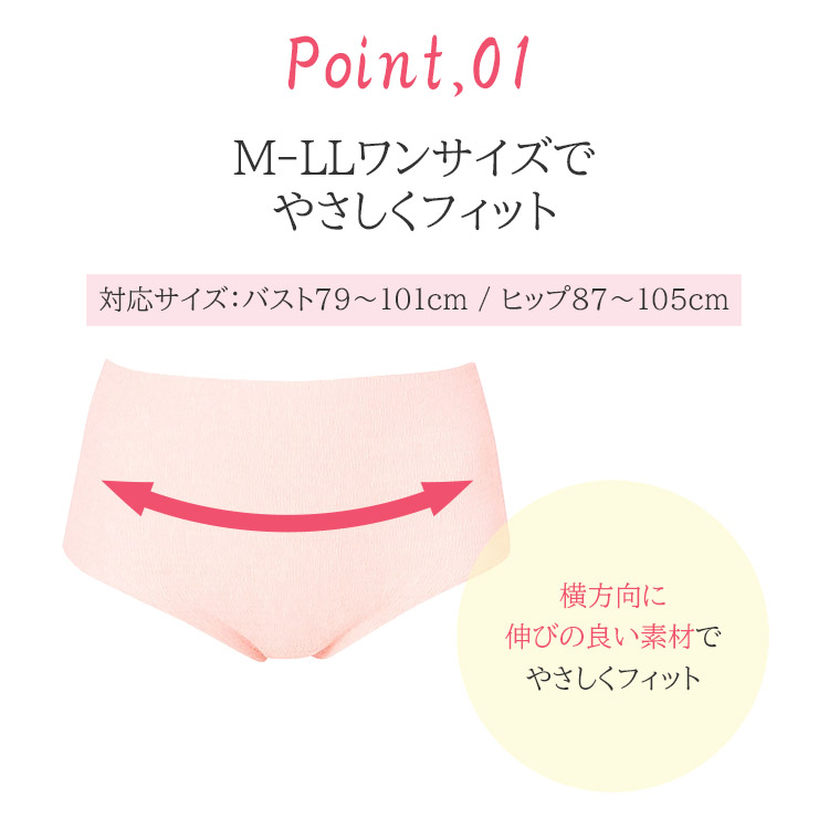 ●M-LLワンサイズ 横方向に伸びのよい素材で、やさしくフィット