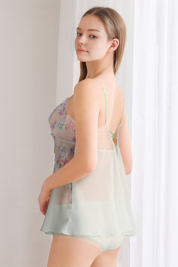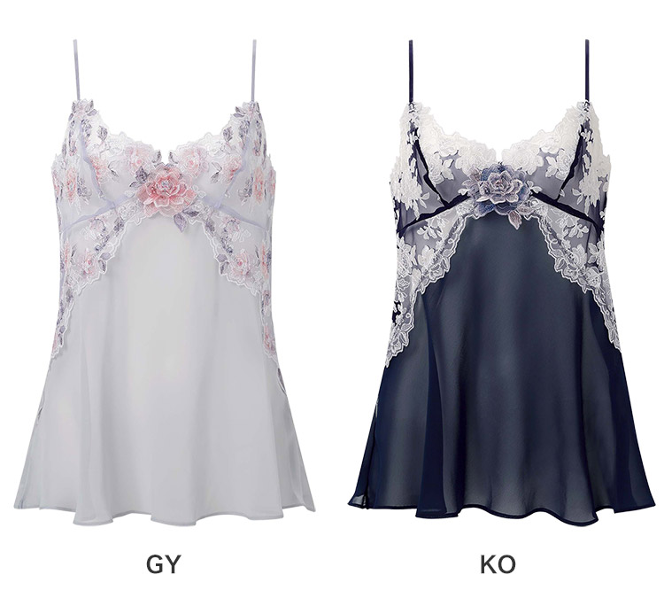 ブラジャーとのコーディネイトも、キャミソール単体でも楽しむことのできる一枚です。