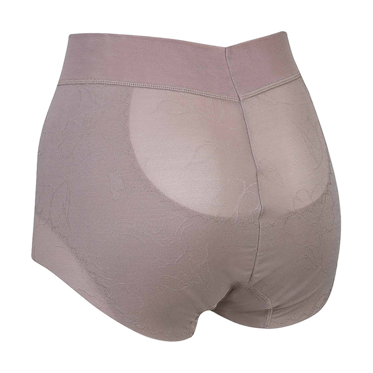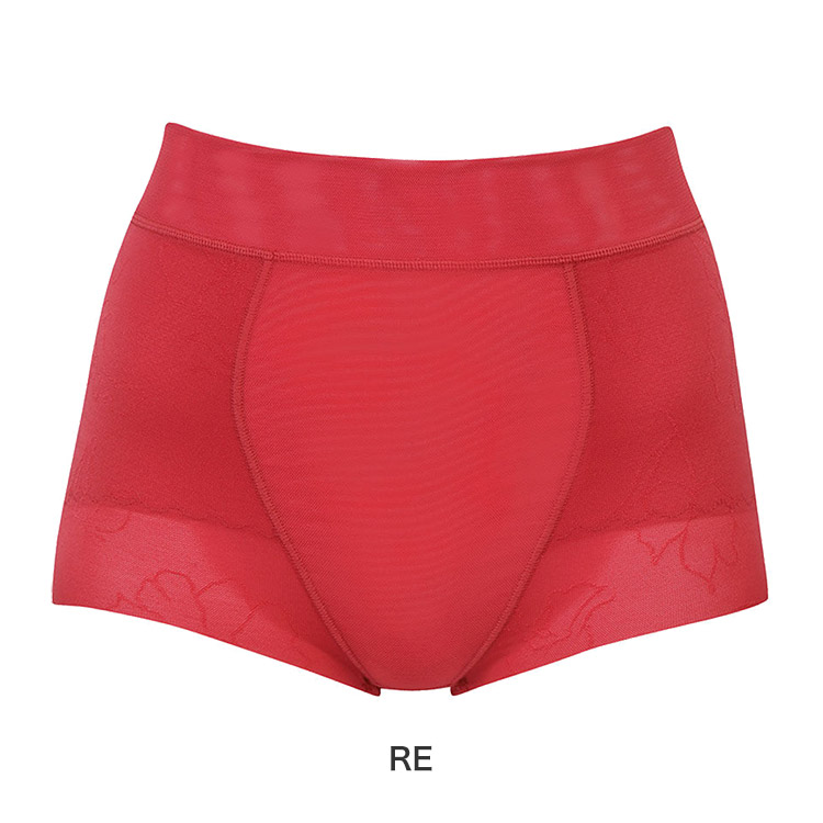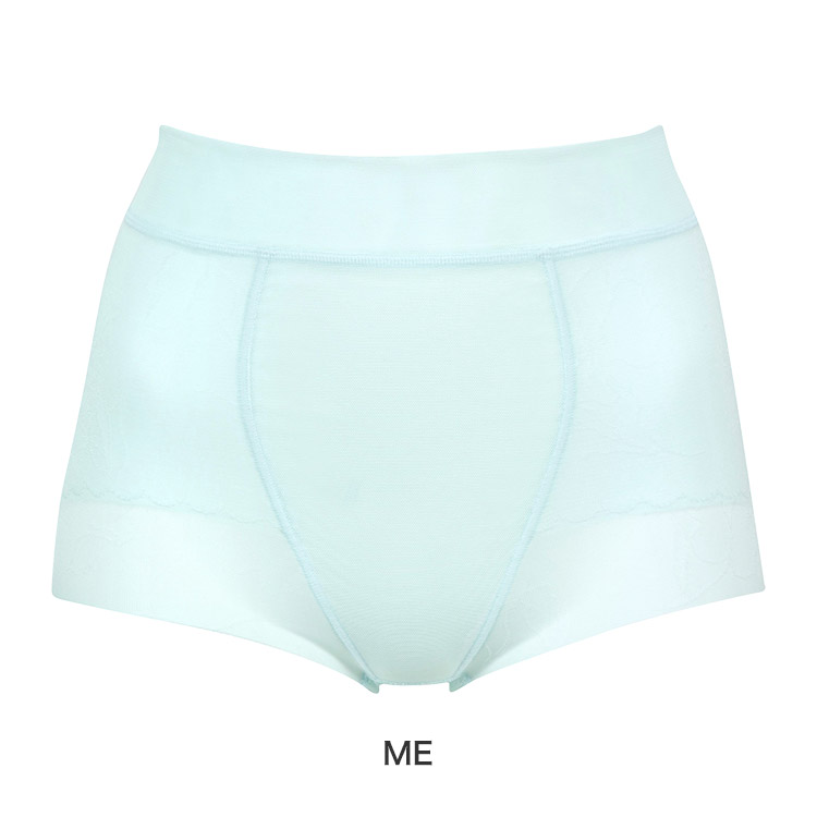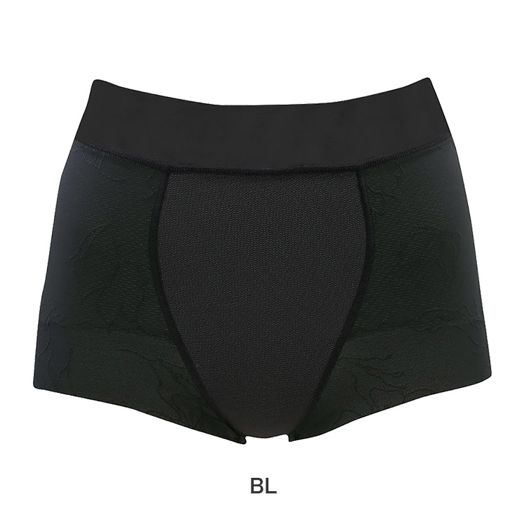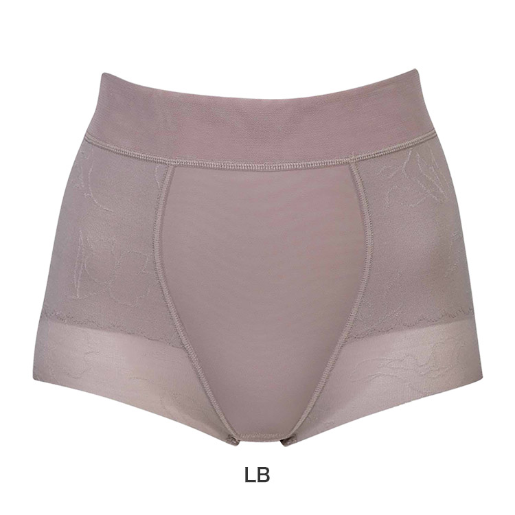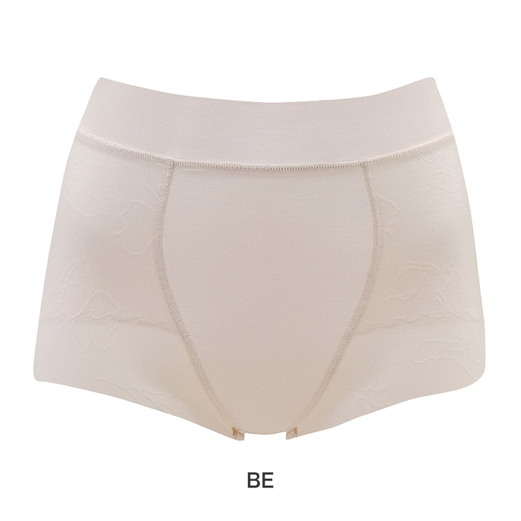 通気性のよいパワーネットの裏打ちで、下から引き上げ、高くヒップアップ。伸縮性のない裏打ち生地で、おなかを押さえて、下腹部もすっきり