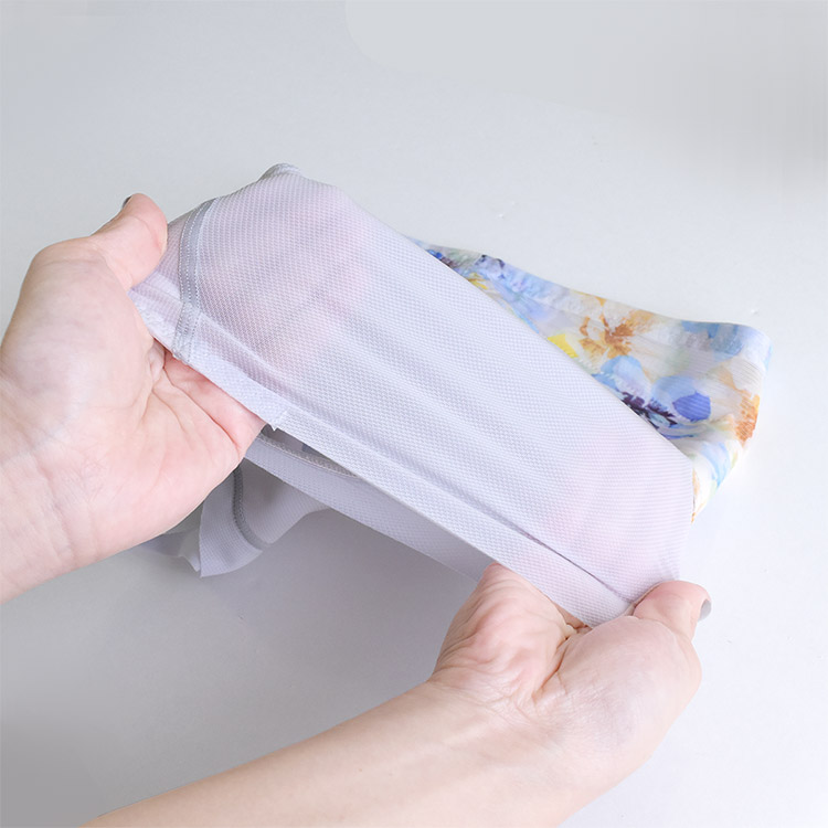 おなかまわりは通気性があり、透け感のある薄い生地でベタつきにくくさらっと快適