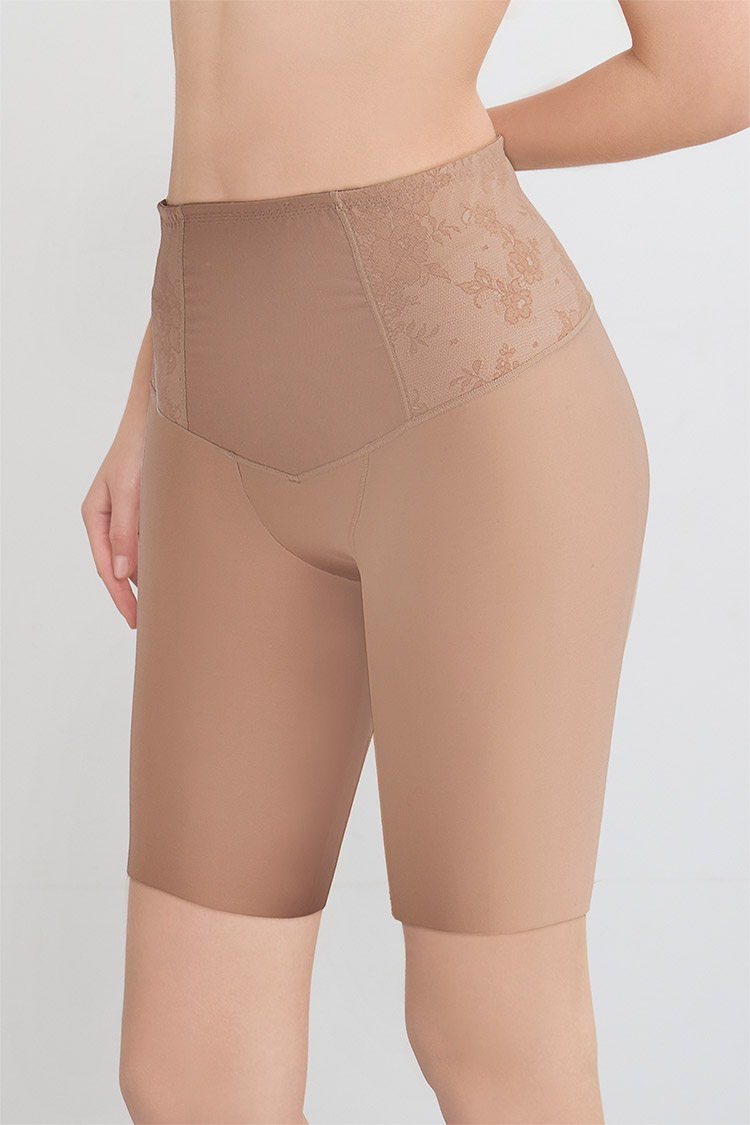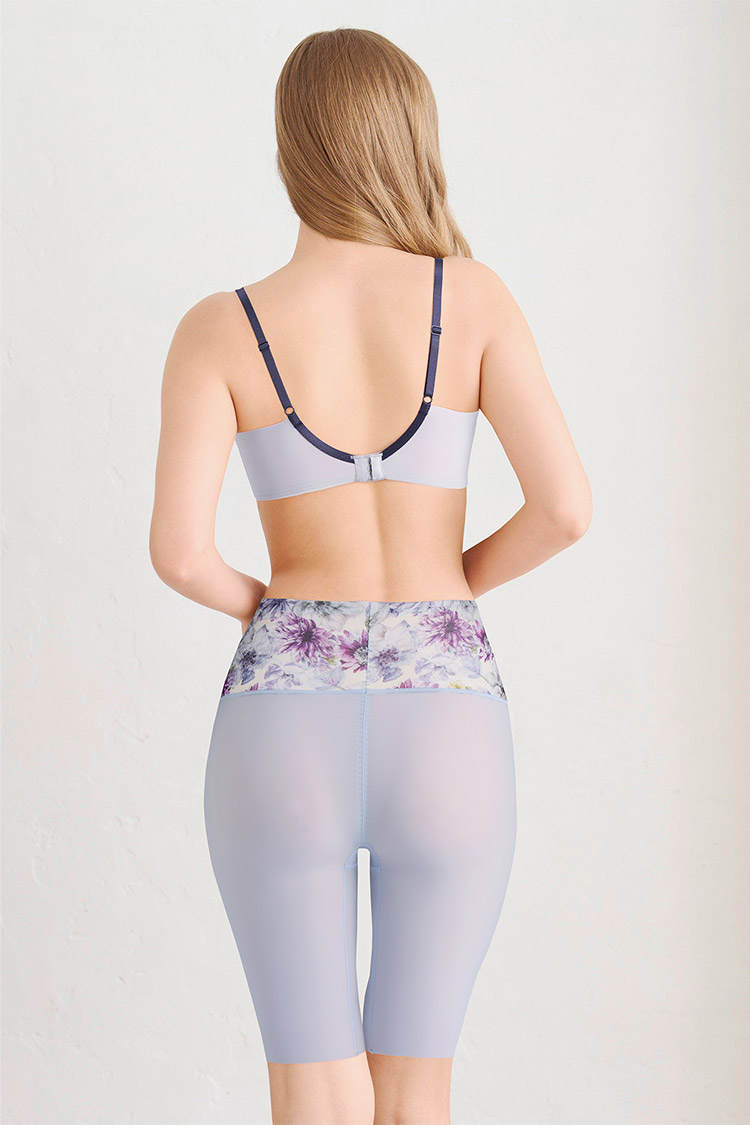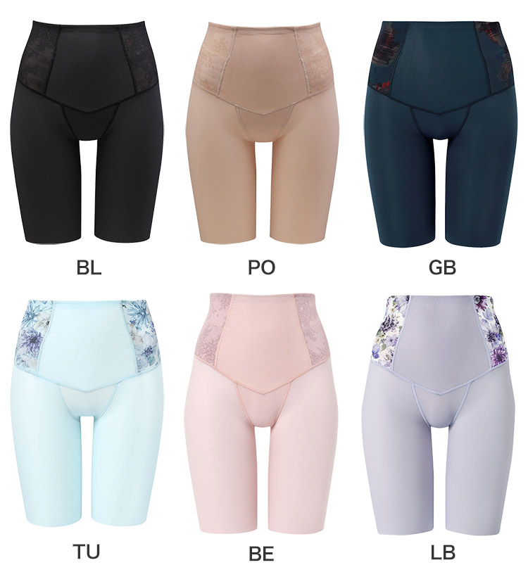 はきこみ丈を通常のジャストウエストより高めの丈にすることで、ふとももからおなか、ふとももからヒップのリフトアップ効果を高め、よりスリムなシルエットを追求。さらにヒップ下はパワー切り替えのない素材で、たるみをぴったり包み、美しいシルエットをキープ