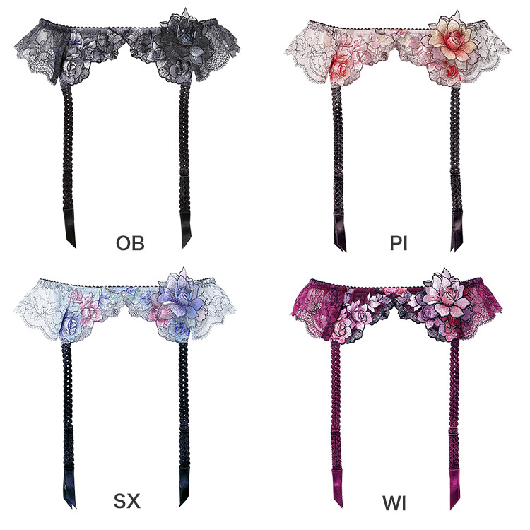 美しい色彩に魅了される華やかなガーターベルト。花々とレースが生み出すしなやかな曲線が、優美でロマンティックなときめきを与えます。存在感のあるバラのアップリケと、花びらの上で雫のように輝くスワロフスキー・クリスタルがポイント。コーディネイトしたときにより美しく映えるよう、緻密に計算されたデザインです。ひらりと揺らぐレースがまるで芸術品のような一枚。