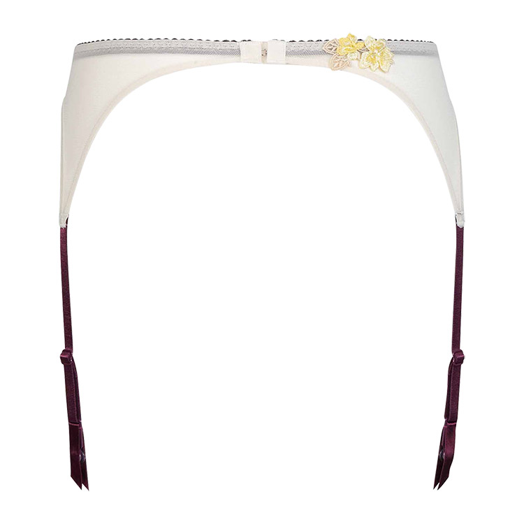 ・フロントには刺繍の柄に合わせたプリントレースを使用