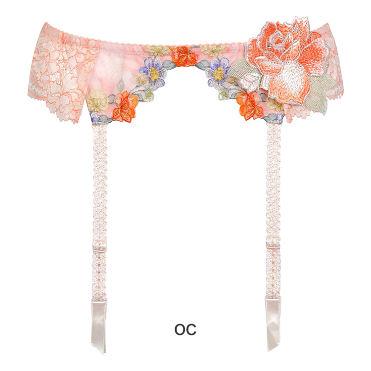 ・フロントには刺繍の柄に合わせたプリントレースを使用