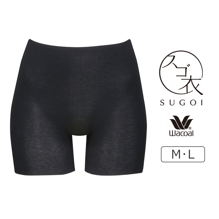 ・股下接ぎは接着手法によるフラット仕上げで肌あたりがやさしい。ウエストはゴムをくるみこみ、肌あたりがやさしい