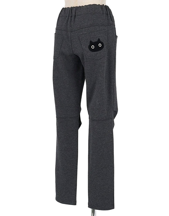 後ろポケットの黒猫のアップリケがデザインポイント。