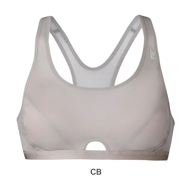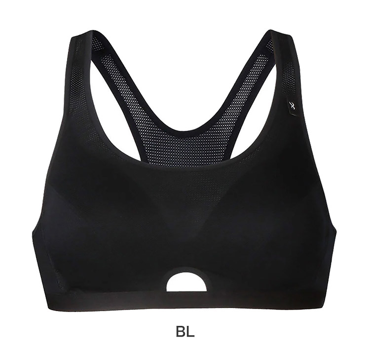 ●前後のセンターホールで通気性もよく、快適なつけごこち。バックのセンターホールが運動時の背中の動きに対応しズレ上がりを軽減。