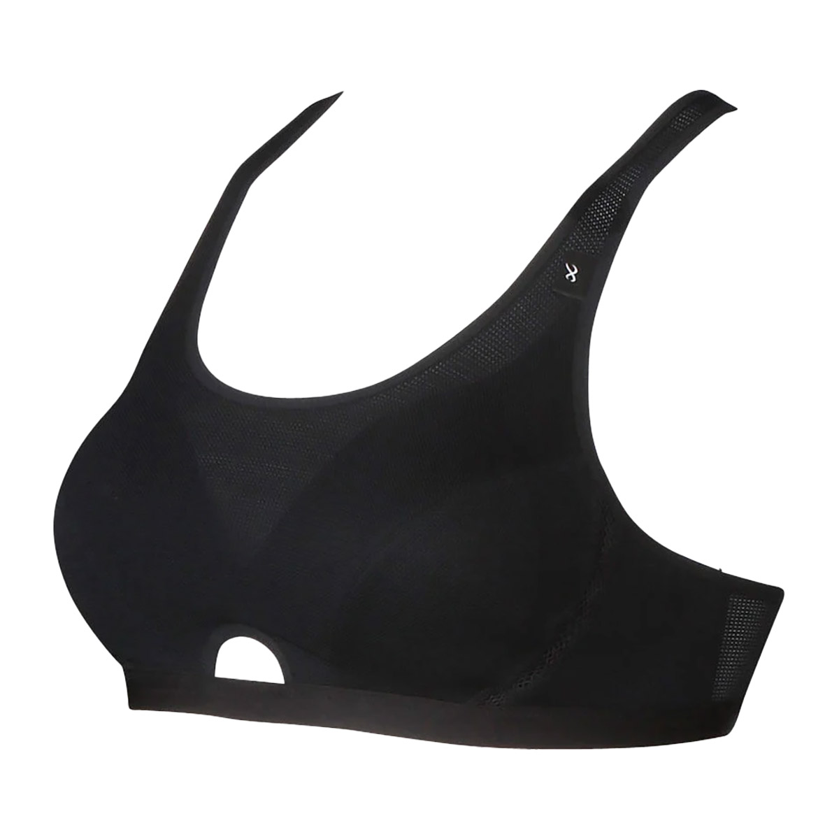 ●前後のセンターホールで通気性もよく、快適なつけごこち。バックのセンターホールが運動時の背中の動きに対応しズレ上がりを軽減。