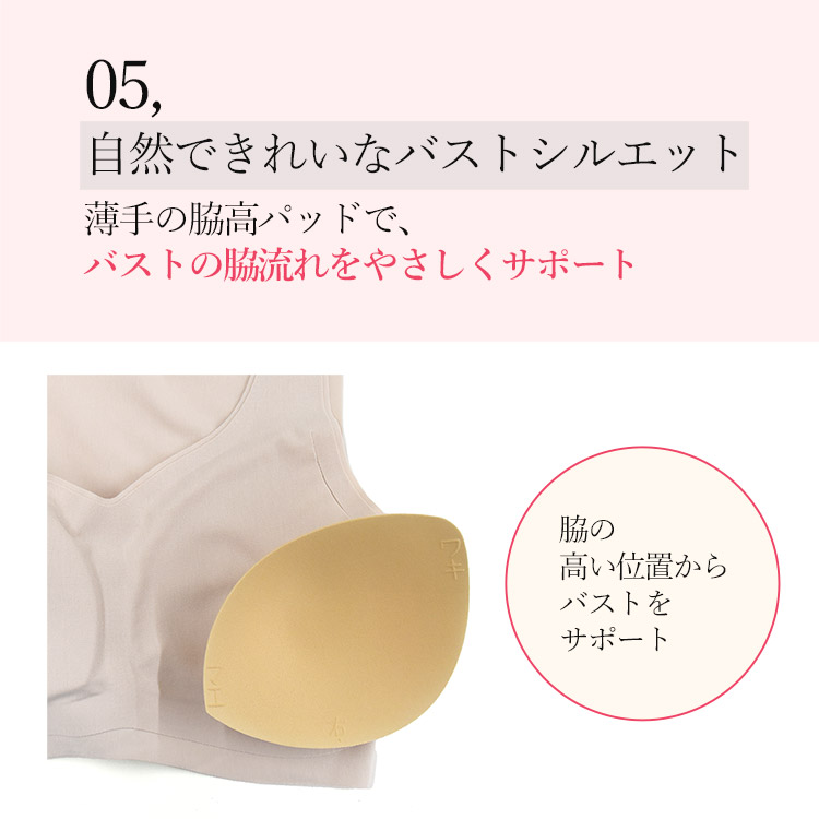 やわらかなウレタンパッドで、バストシルエットをラクしてきれいにととのえます。