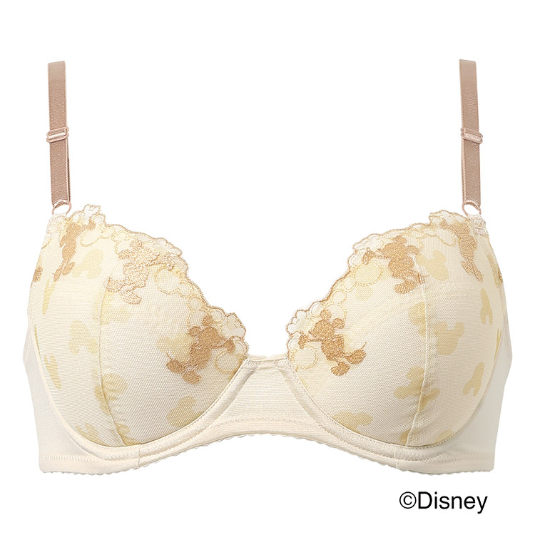 ウイングブランド誕生50周年を記念したスペシャルデザイン。世界中で大人気のディズニーキャラクターをデザインした特別なアイテムが登場です。ポイントは、「ミッキー」を描いたかわいいレース。思わず集めたくなる2柄×2色の展開です。ナチュラルアップブラはふっくらボリュームアップしてバストメイクしたいけど、くっきり目立つのは苦手な方へおすすめ。肌ざわりのよい素材にこだわり、ふんわりバストにフィットして、つけごこちも、シルエットもナチュラルにバストアップ。取りはずし可能なパッドでボリューム調整もできて、自然でまるみのあるバストラインを演出できます。
