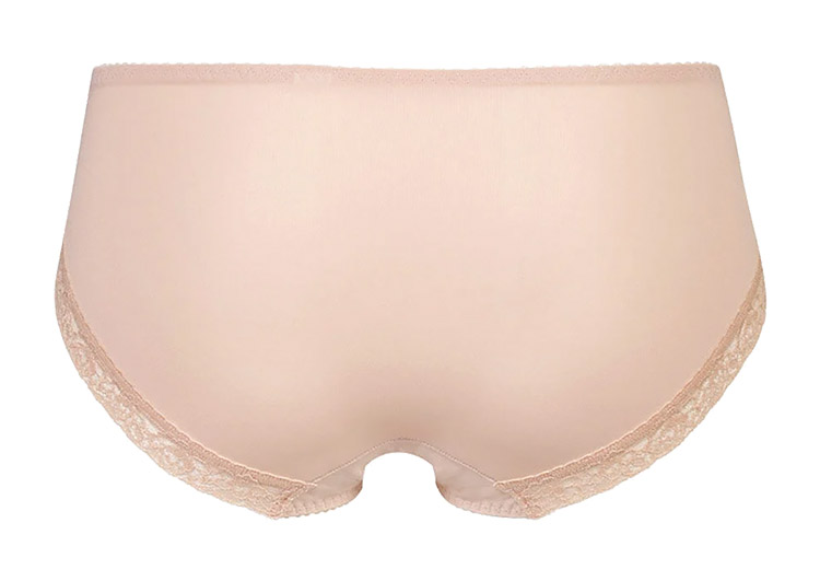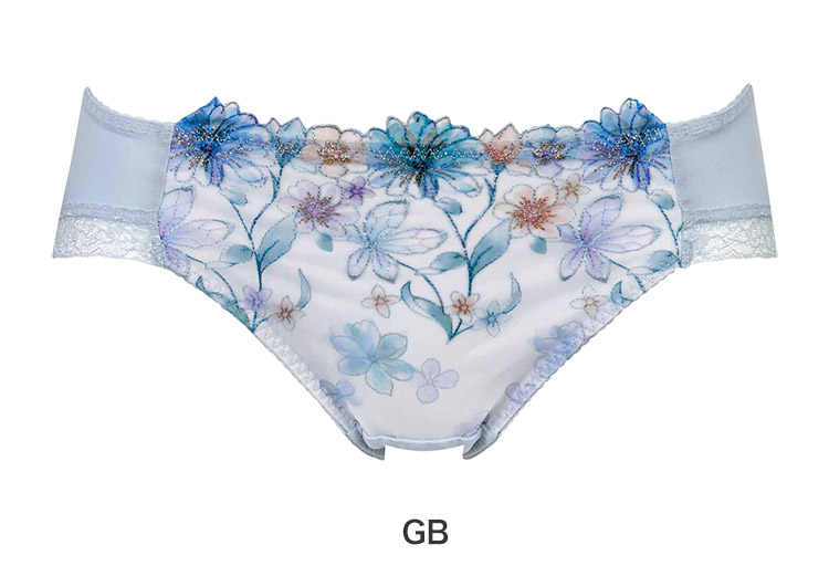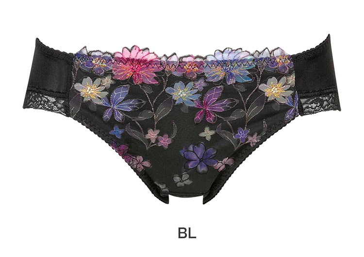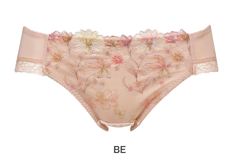 スキマフィットブラ(KB2366)とペアコーデが楽しめる華やかなショーツ。身生地部にはソフトで風合いのよい素材を使ったやさしいはきごこち。ウエストや足の付け根のしめつけ感を軽減するため、ウエストと前裾に高伸度のテープを使用。バック裾もストレッチ性のあるレースをあしらい、アウターにラインがひびきにくい仕様に。