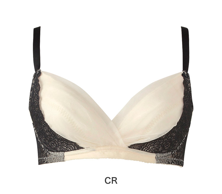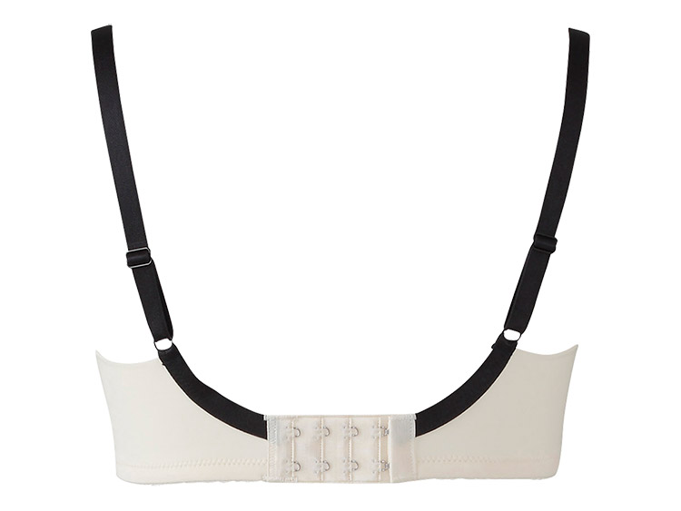 カップ脇側は、一方向に伸びる材料でほどよくバストをホールド。
