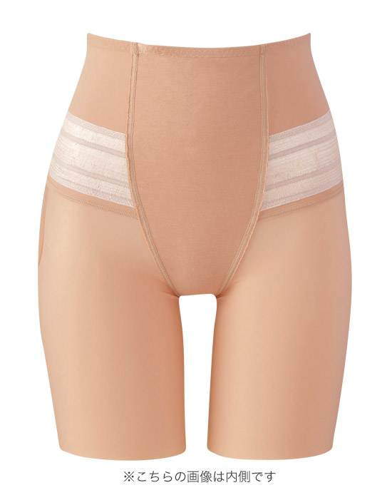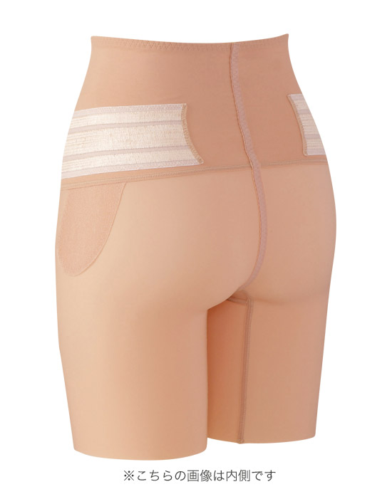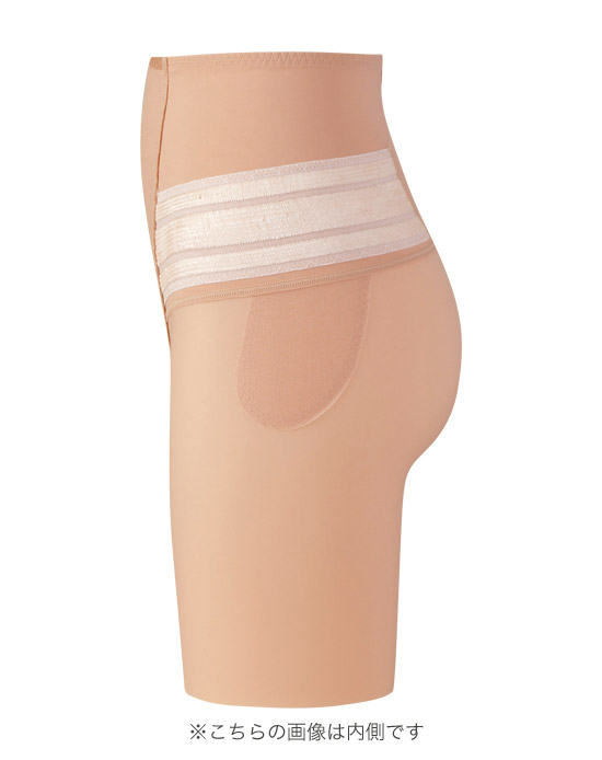 ・“すべりにくい”“ソフトな肌ざわり”という特徴をもつ超極細繊維を使用した「NANOテープ®」[特許 第5296901号]で、気になる下半身の“たるみ”を下からググッと引き上げ、スリムなシルエットを追求。(肌リフト構造)