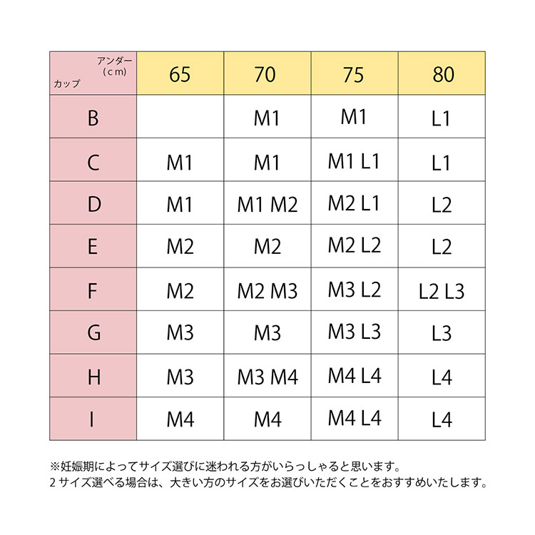 ●マタニティ期のバスト変化を考慮した、M1?L4サイズまでの細かいサイズ対応