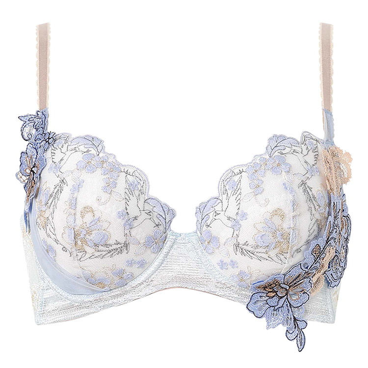 気になる背中の段差、 ブラですっきりスムージング 幸運のモチーフが羽ばたく レースとアップリケの贅沢な華やぎ