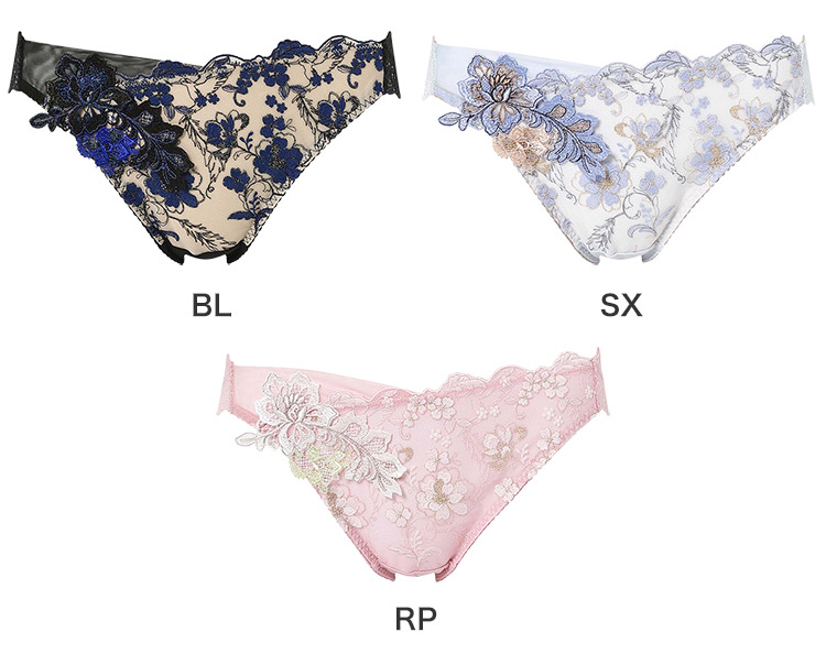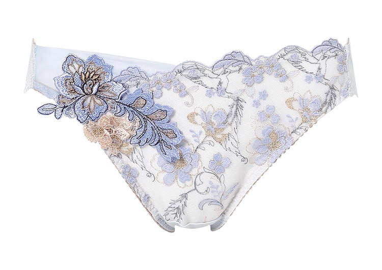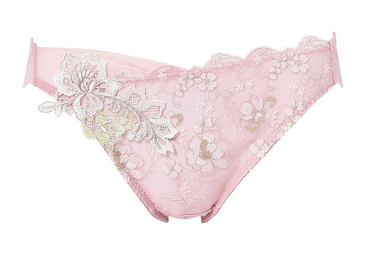 ブラ(PB4010)とのペアコーデが楽しめる、華やかなショーツ。幸運のお守りのように、幸せや飛躍を象徴する羽や鳥モチーフを、刺繍レースにしのばせた特別感あふれるデザイン。バックは伸びのよい素材を使い、ほどよいフィット感に。贅沢なレースの華やぎで気分を上げたい日におすすめです。
