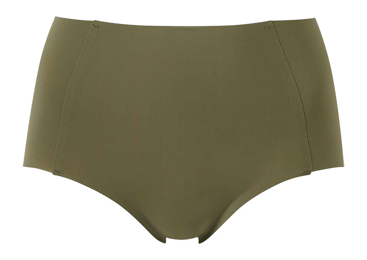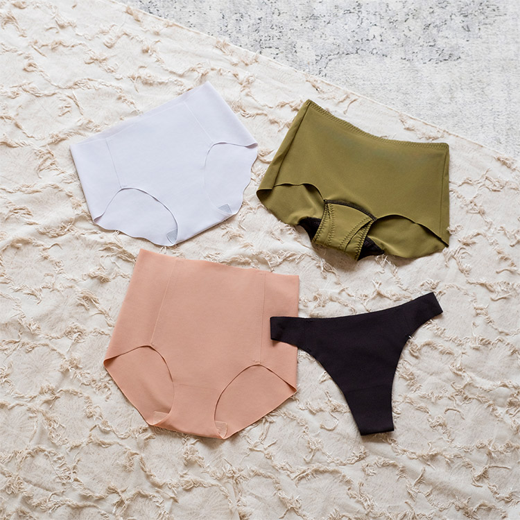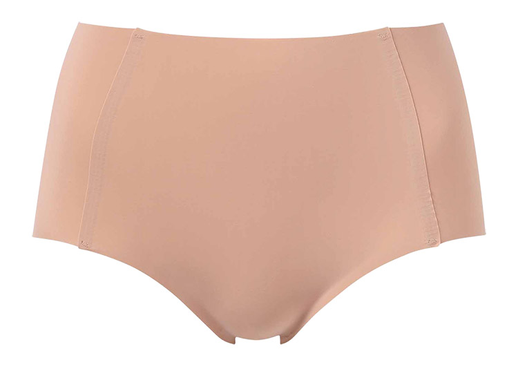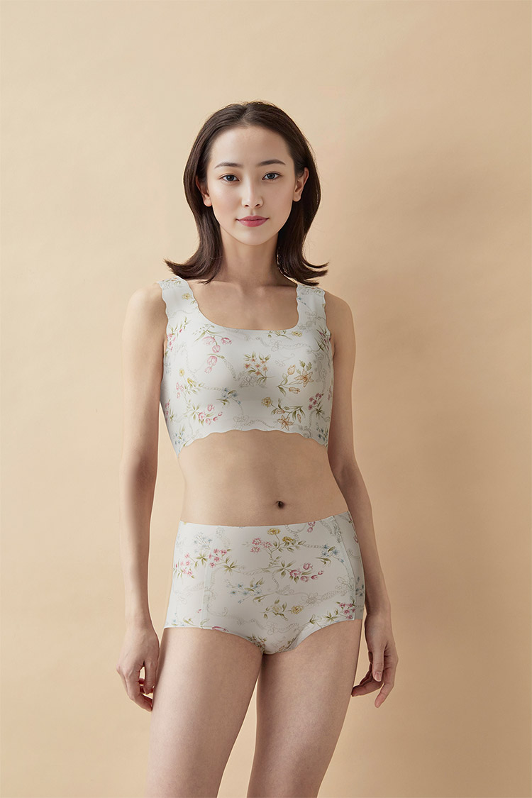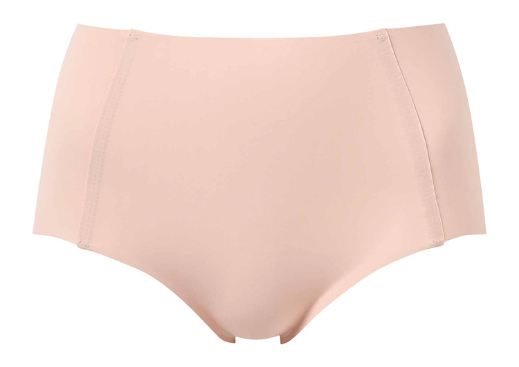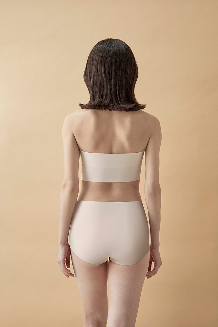 伸びのよい素材を使用、接着手法によるフラット仕上げで肌に縫い目があたらない