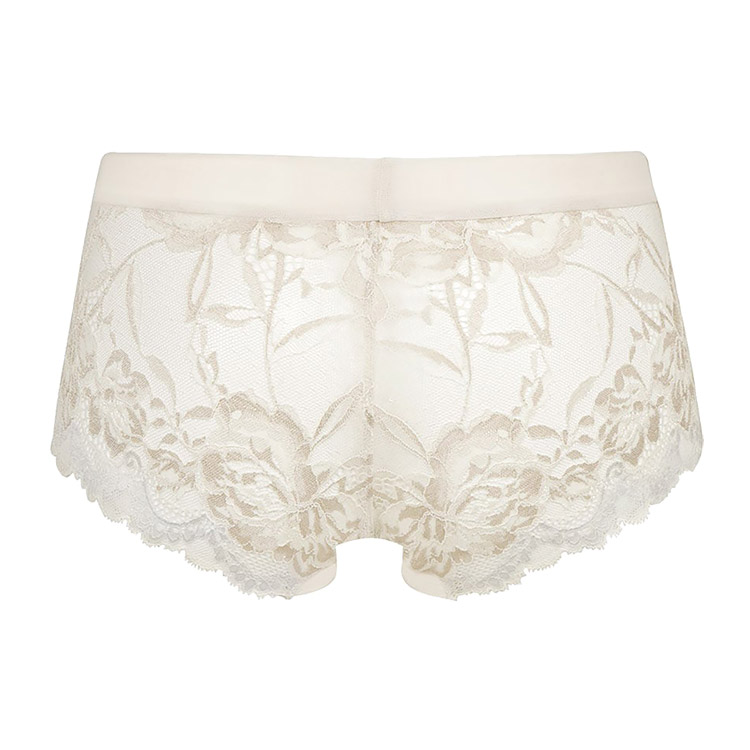 ・フロントにあしらったレースにほどこした、やわらかな光をイメージした箔プリントの上品なキラキラ感がポイント