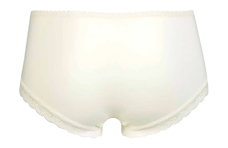 バックはやわらかく伸びるナイロンベア天竺素材で、はきごこちがよい