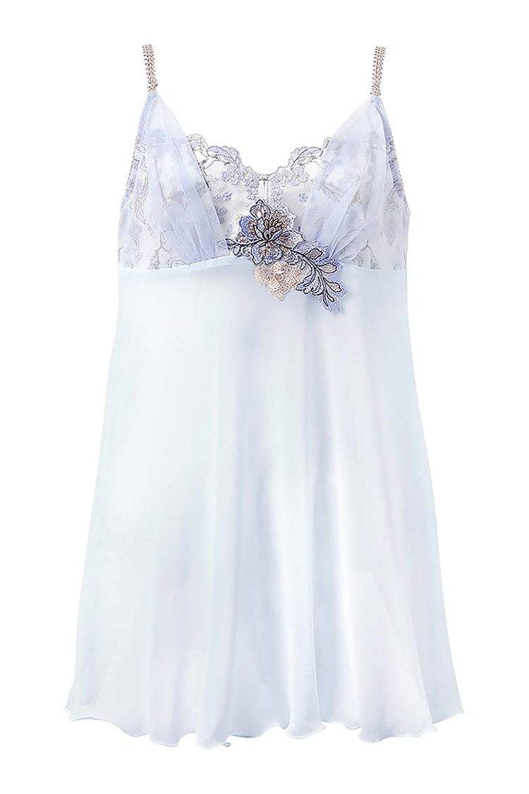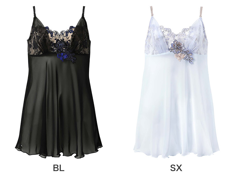 ブラ(PB4010)シリーズとコーディネイトが楽しめる、華やかなロングキャミソール。幸運のお守りのように、幸せや飛躍を象徴する羽や鳥モチーフを、刺繍レースにしのばせた特別感あふれるデザイン。フロントは刺繍レースのカップにチュールを重ねてふんわりエアリーな華やぎに。本体は上品なシアー感の軽やかなシフォン素材で、流れるようなフレアーシルエットに仕上げました。バックレースにもアップリケを咲かせて、後ろ姿も美しく。気分を上げたい日のお出かけインナーはもちろん、優雅にくつろぎたい日のおうちインナーにもおすすめです。