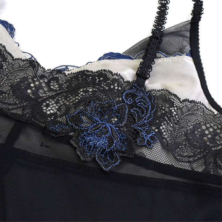 バックレースにアップリケをあしらった贅沢なデザイン