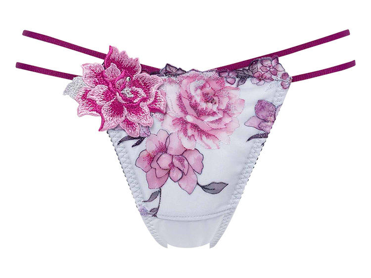 ・フロントには刺繍の柄に合わせたプリントレースを使用