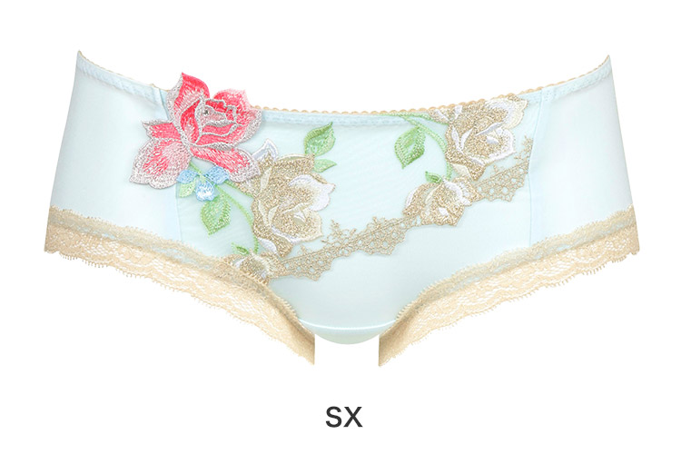 ・フロントのレースとアップリケにはラメ糸を使用