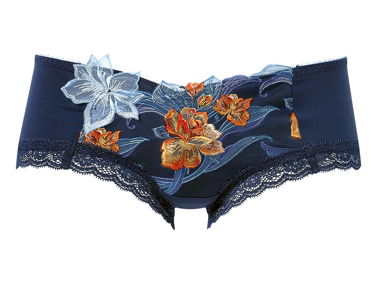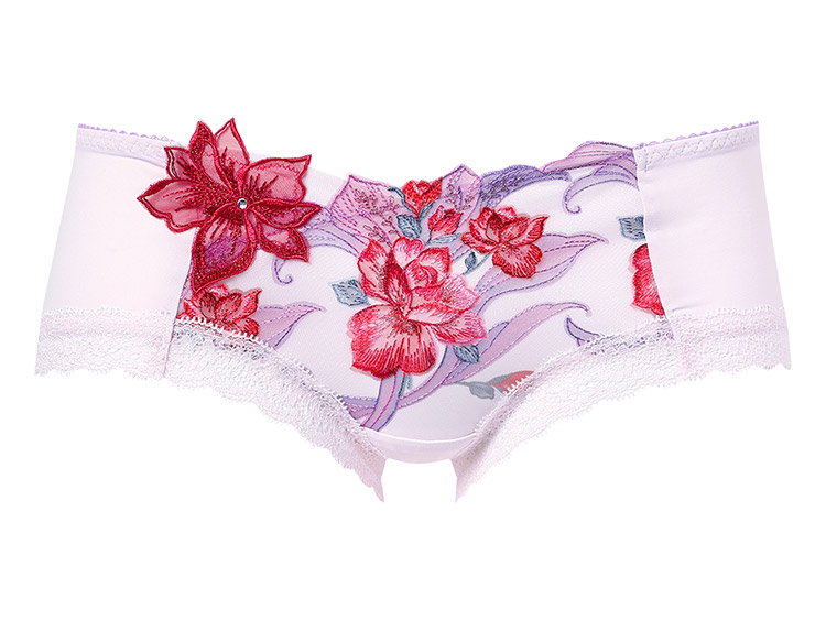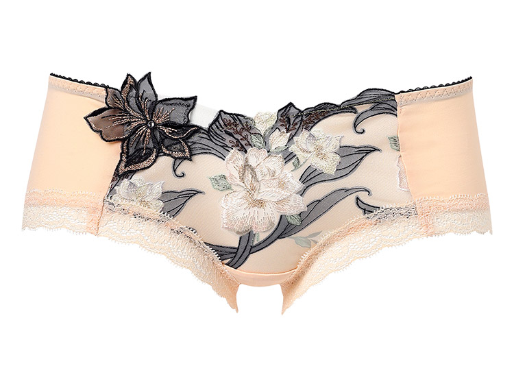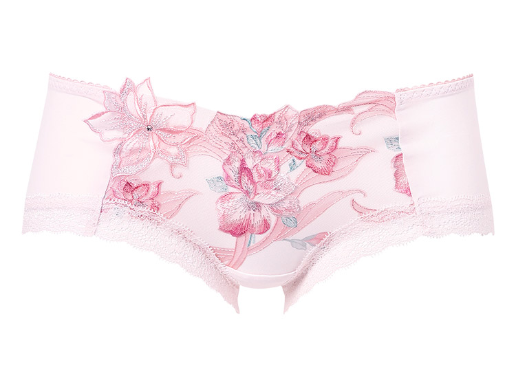 ・フロントには刺繍の柄に合わせたプリントレースを使用