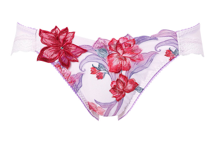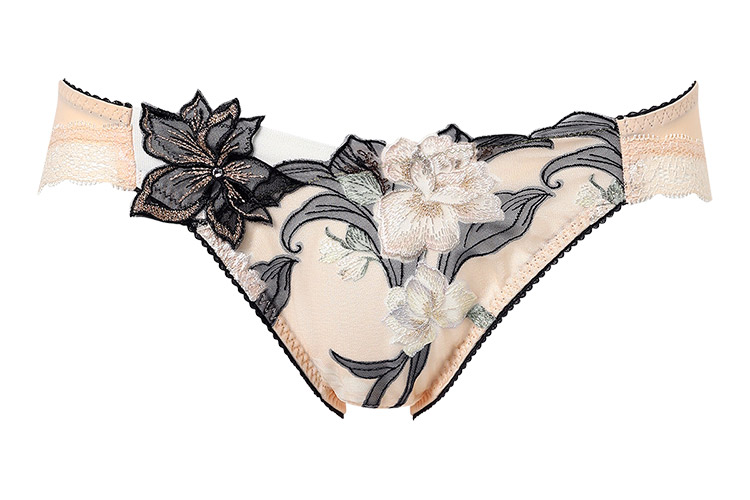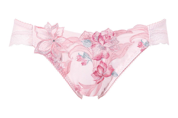 ・フロントには刺繍の柄に合わせたプリントレースを使用
