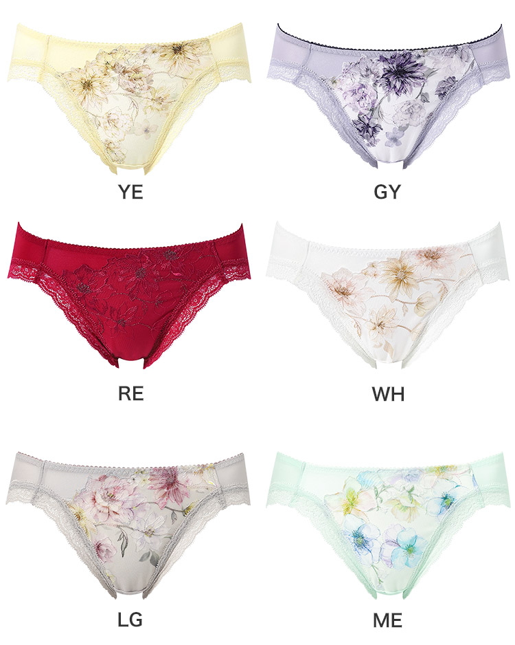 「ハグするブラ(BXB478)」「ハグするブラ コンパクトメイク(BXB378)」とペアコーデが楽しめるショーツ。あさめのはきこみ丈ですっきりとした印象です。表情豊かな花々が咲くフラワーガーデンを表現したレースをフロントにあしらった、スウィートな気分に浸れるデザインです。