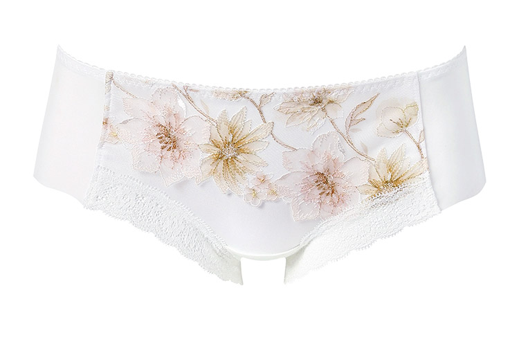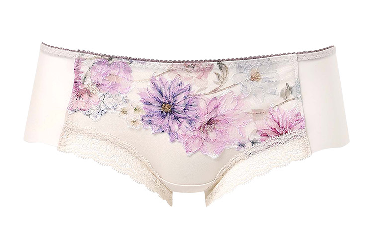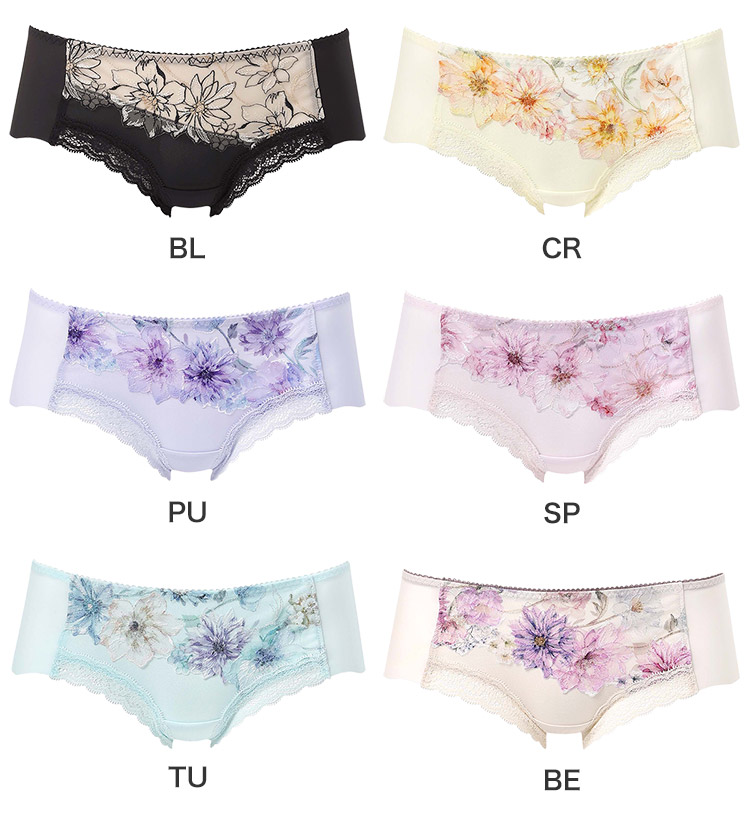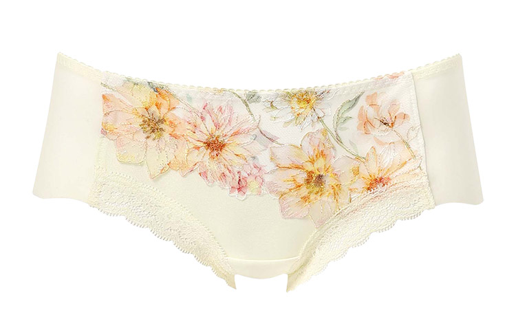 「ハグするブラ(BXB478)」「ハグするブラ コンパクトメイク(BXB378)」とペアコーデが楽しめるボーイレングスショーツ。表情豊かな花々が咲くフラワーガーデンを表現したレースをフロントにあしらったスウィートなデザインも魅力です。