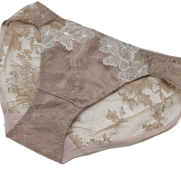 優美なリバーレースの花々に可憐な蝶々のモチーフが舞う、繊細で軽やかなデザインのショーツ。