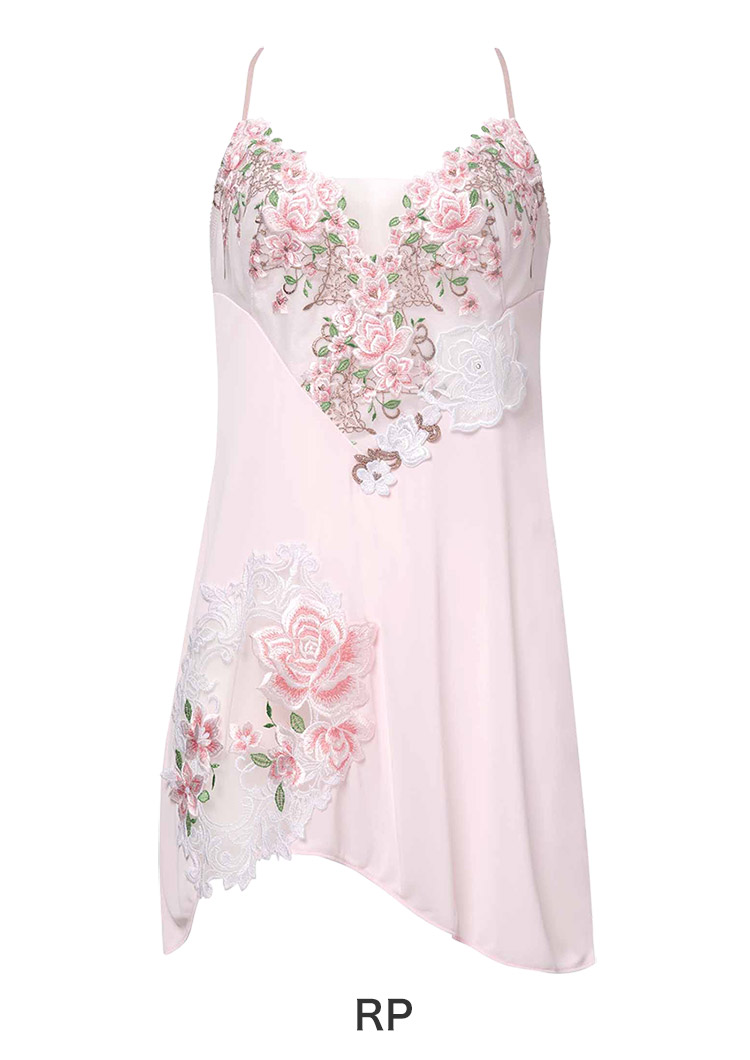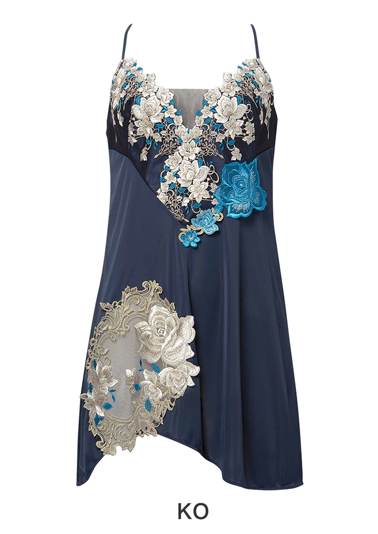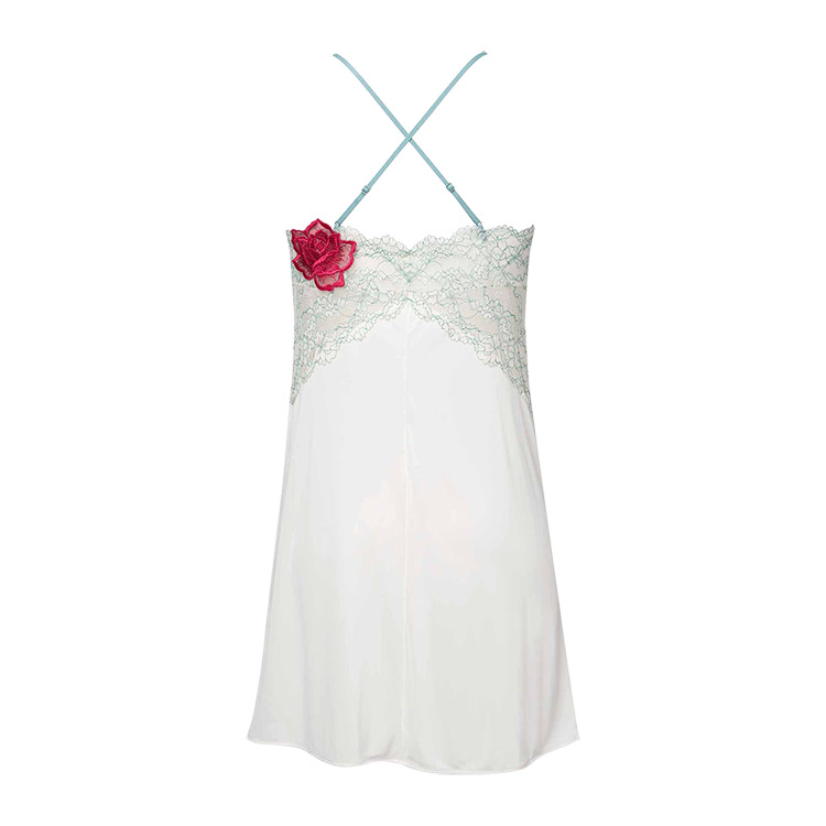 ・胸もとのレースとフロントのアップリケにはラメ糸を使用