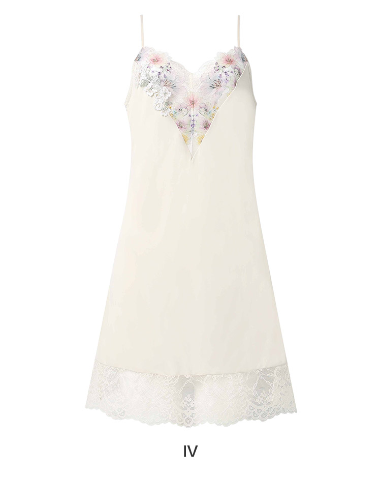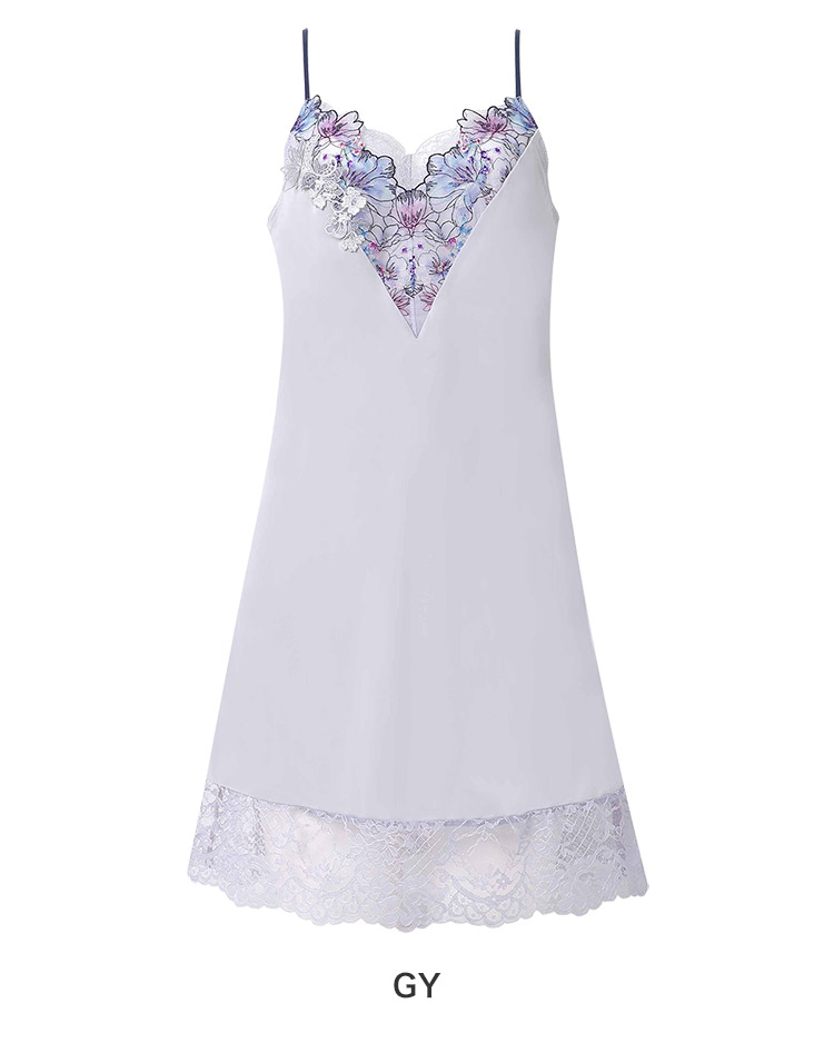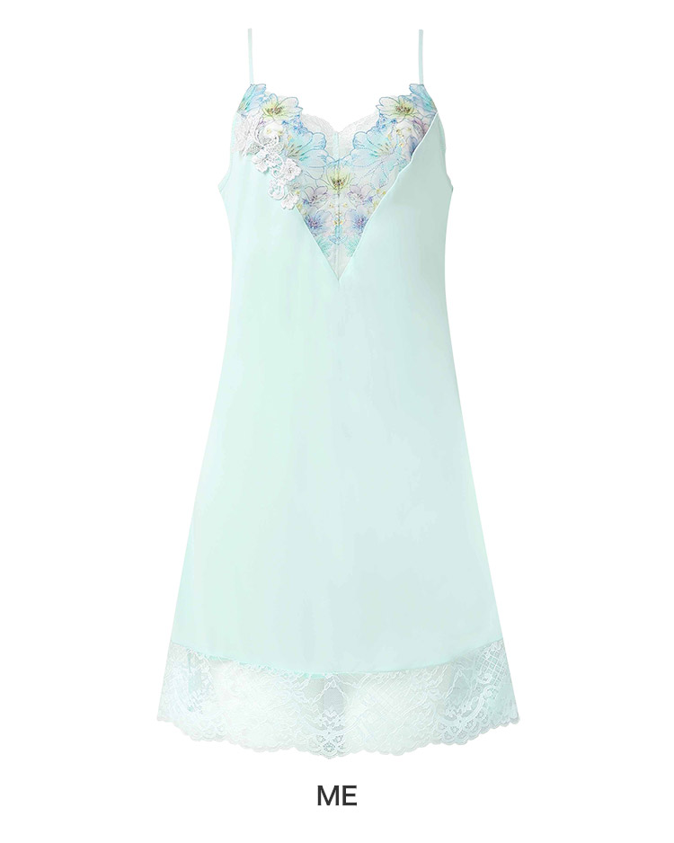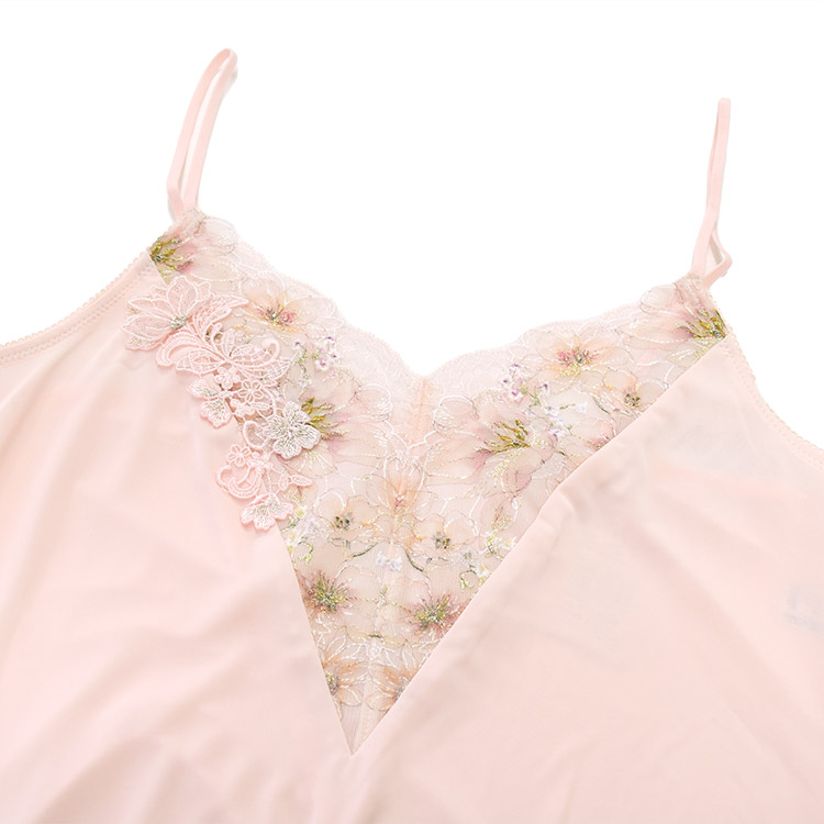 ・カップには草花モチーフのケミカルアップリケに花を描いたチュールエンブロイダリーアップリケの立体加工がされ特別感のあるデザイン
