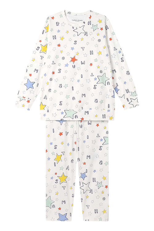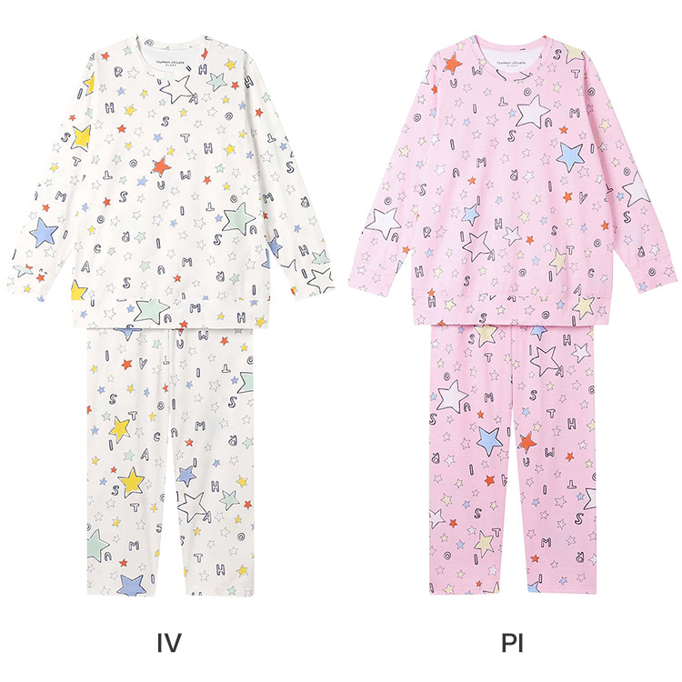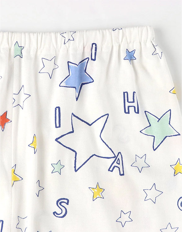・いろいろな大きさのカラフルな星のモチーフがポップで楽しい柄