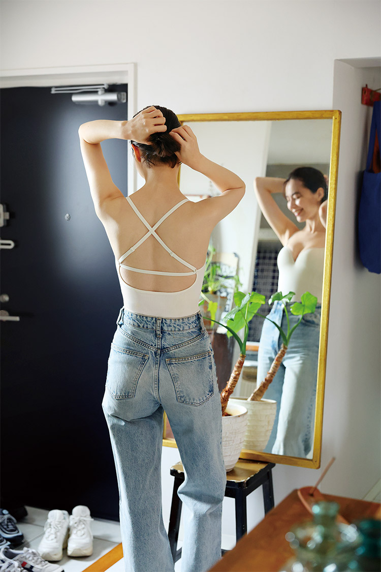 立体カップと伸縮性のある本体素材でさまざまな体型にフィット。ほどよい造形性できれいなバストラインに